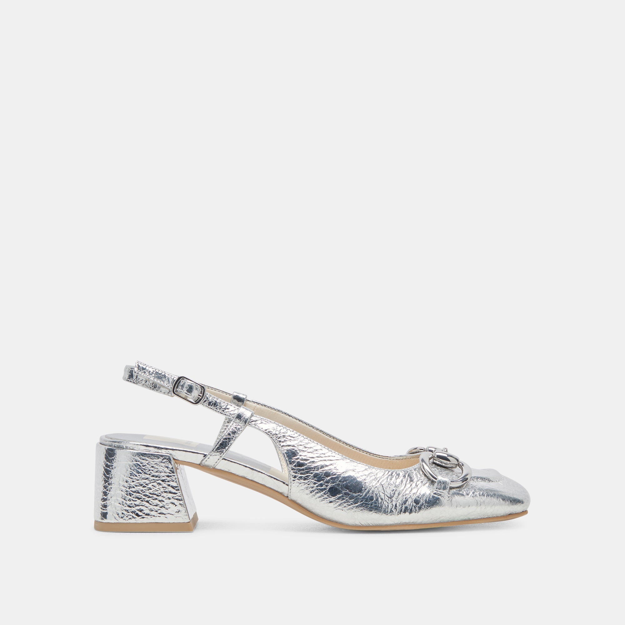 MELLI is vintage-inspired and oh-so-chic. Her slingback strap. low block heel. metal detail. and rectangular silhouette will take you back to another decade.