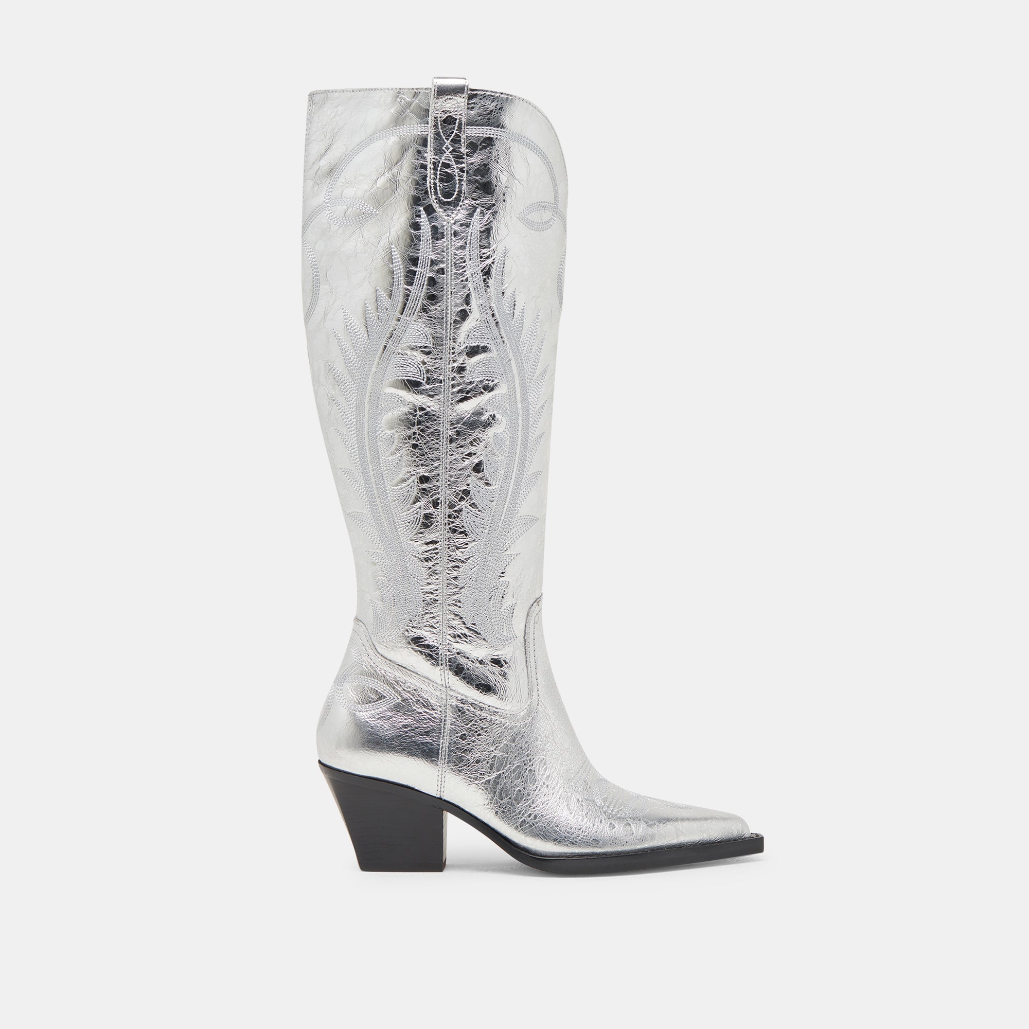 RYATT EXTRA WIDE CALF BOOTS SILVER DISTRESSED LEATHER